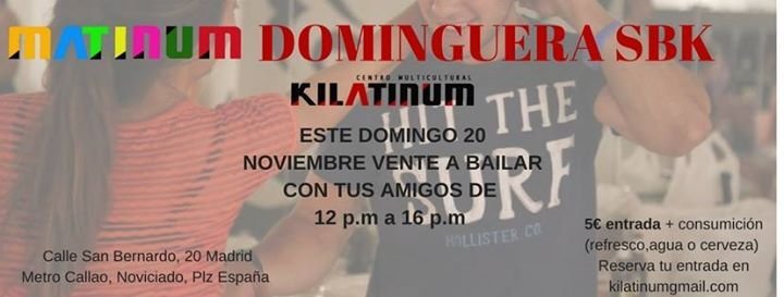 The dancer is that person who listens to music and moves his foot, one who can not stop dancing for a single day. For you this event is created on Sunday 20 from 12pm to 16pm we will meet at Kilatinum home to dance the best salsa, bachata and kizomba music with the best atmosphere in Madrid. Tell your friends and come comfortable to enjoy a great morning.