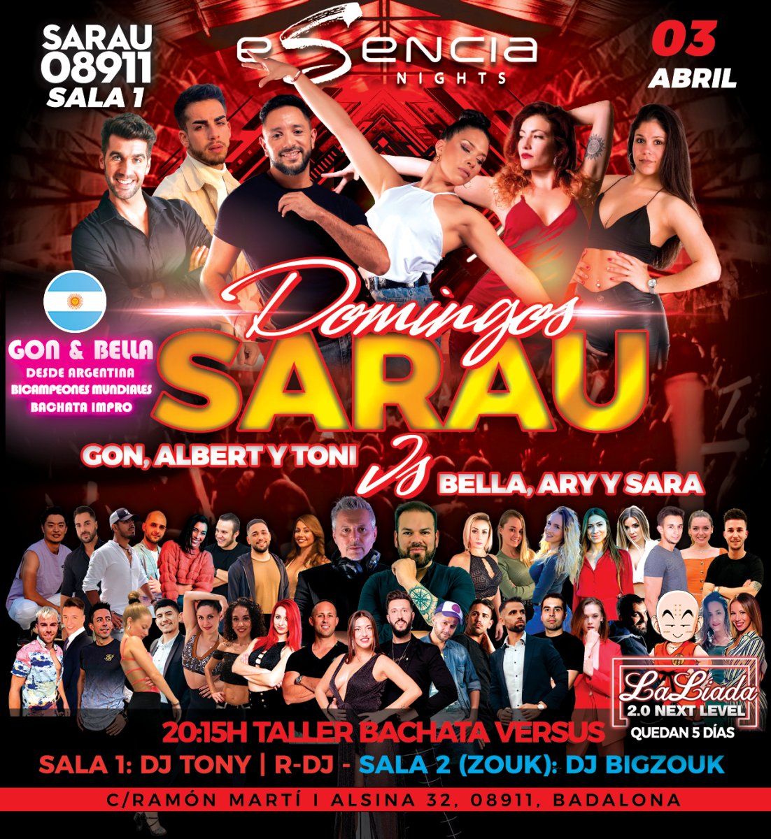 20h h Taller de Bachata parejas: Gon, Albert y Tony VS Bella, Ary y Sara