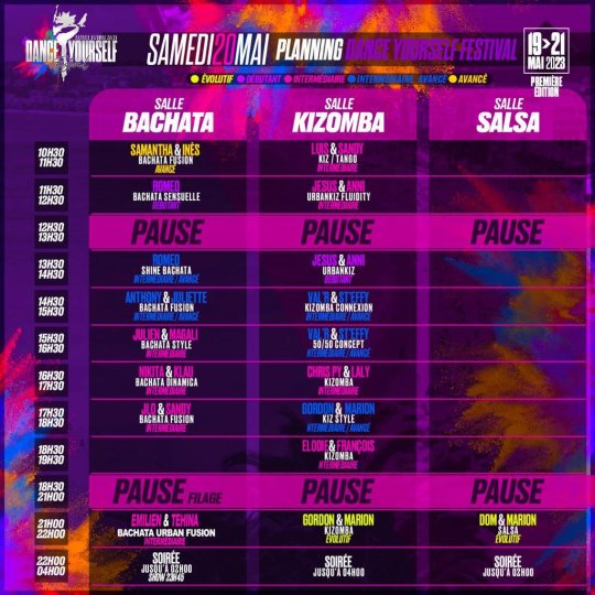 A new BKS festival (Bachata/Kizomba/Salsa) is coming to the Côte d'Azur!!! On May 19, 20 & 21, 2023, the Dance Yourself Festival presents its 1st Edition! An event around Bachata, Kizomba and Salsa, with many recognized artists in the field!