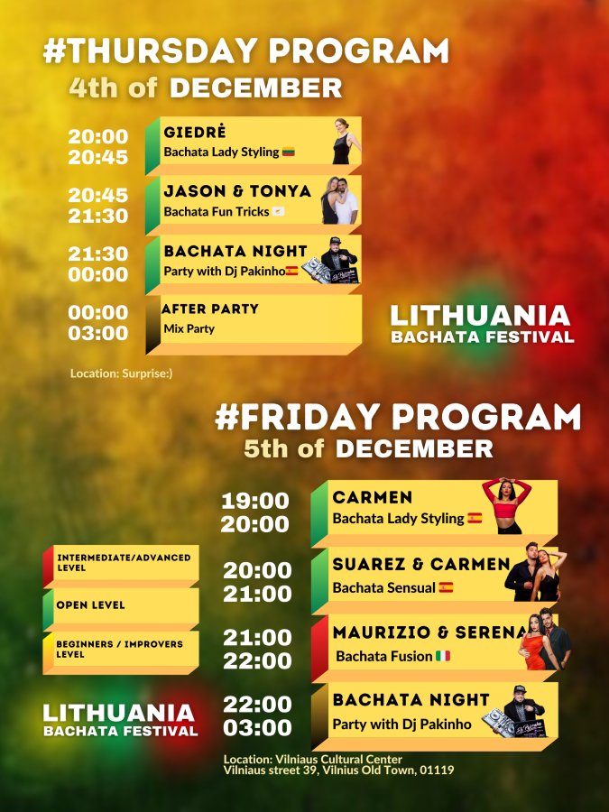 โ Both International & National Artists + DJ's of Bachata + best Lithuanian DJ