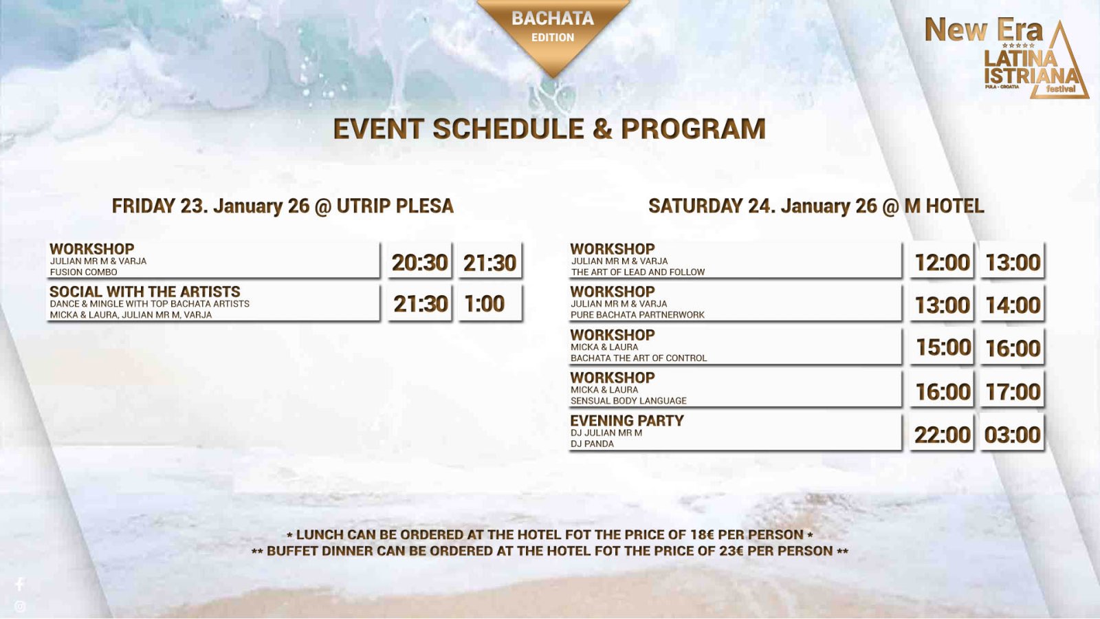 💃 21:30–01:00 SOCIAL WITH THE ARTISTS: Dance & Mingle with top bachata artists Micka & Laura, Julian Mr M, Varja