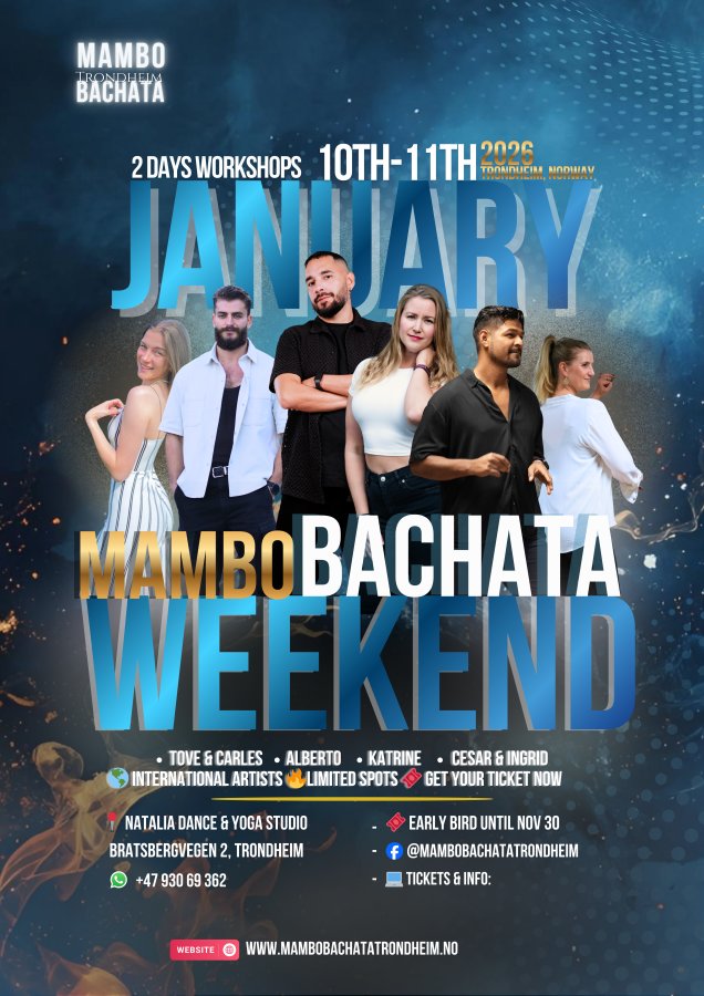 If you are looking for a high-quality Bachata and Mambo weekend in Norway, the Mambo Bachata Weekend – Winter Edition 2026 in Trondheim is the perfect event to join.