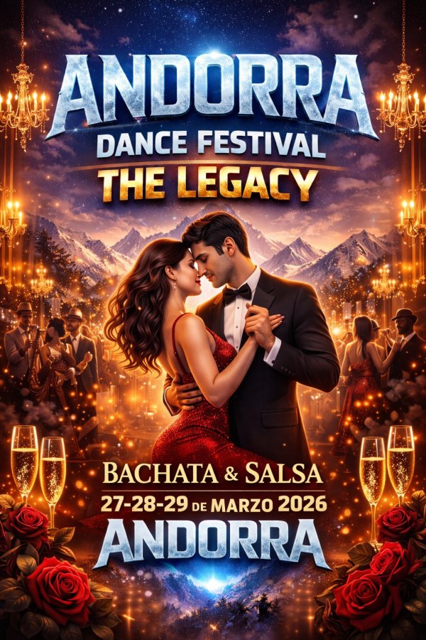 Andorra Dance Festival – The Legacy is an international bachata and salsa congress created with the goal of becoming a reference event in the Pyrenees, combining high-quality training, socials, shows, and a carefully curated experience in every detail.