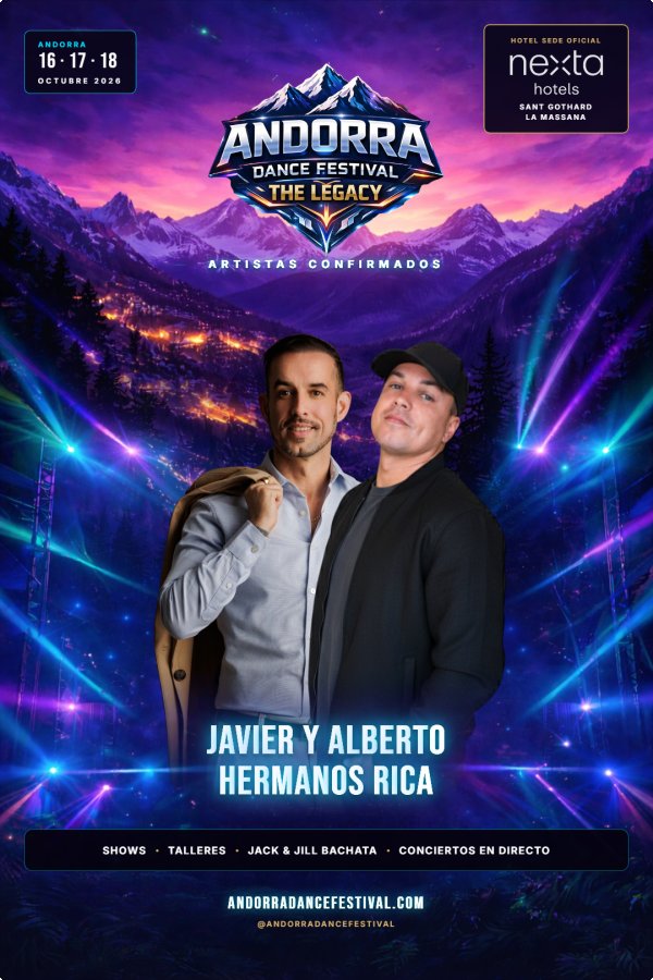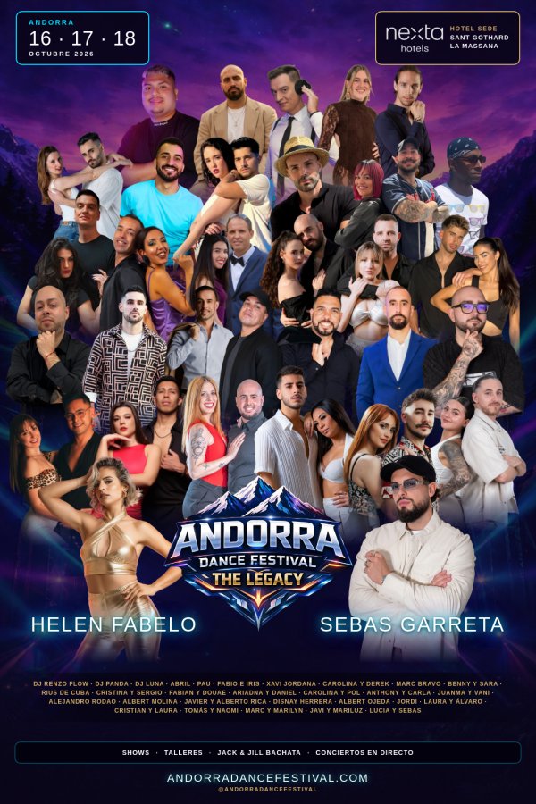 Andorra Dance Festival – The Legacy is an international bachata and salsa congress created with the goal of becoming a reference event in the Pyrenees, combining high-quality training, socials, shows, and a carefully curated experience in every detail.