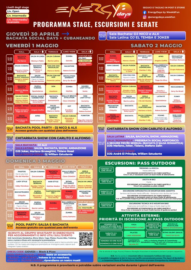 Vuoi prenotare un pacchetto con pernottamento? Visita il nostro shop https://energydays.loggiatour.it/prodotto/bachata-social-days-2026-poiano-resort-garda/
