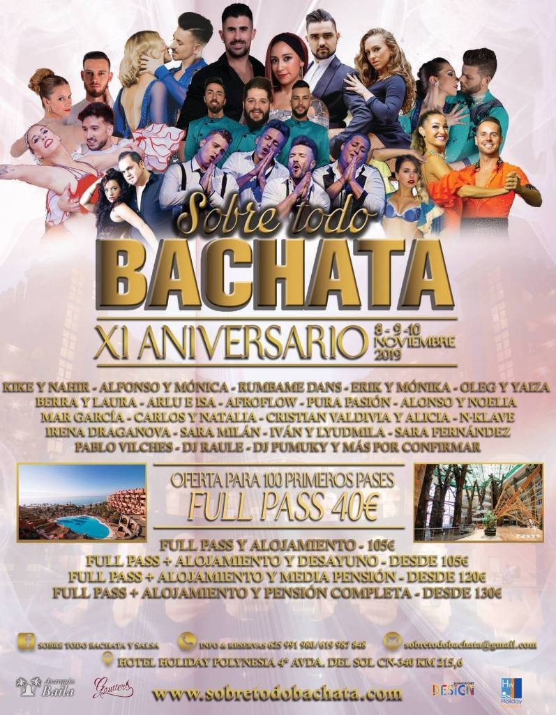 Congreso de Salsa, Bachata y Kizomba en el que se hace la final del Concurso Internacional “Sobre todo BACHATA”. Se realiza en plena Costa del Sol, muy bien comunicado, y en unas magníficas instalaciones.