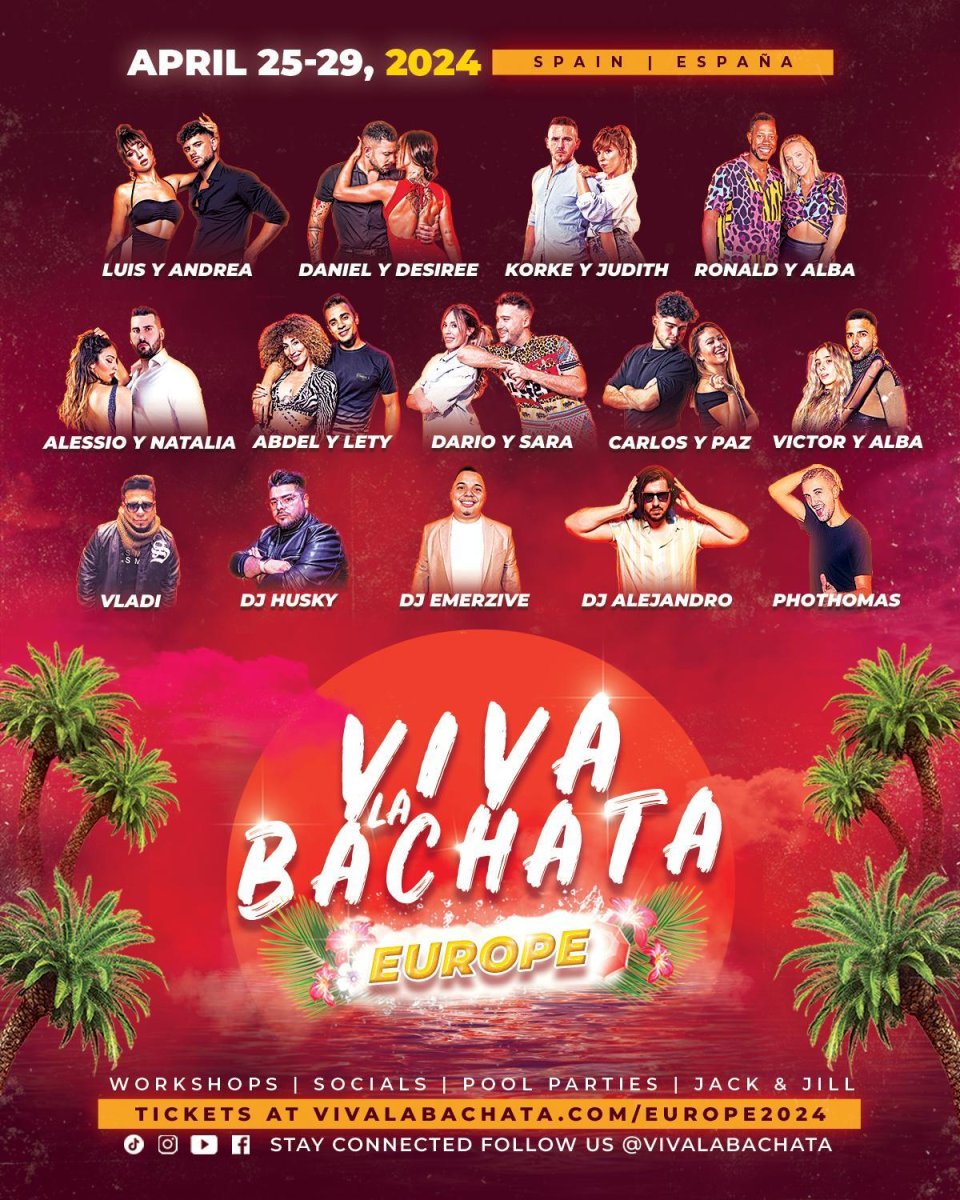 Follow us on instagram and in all social media as @Vivalabachata_europe @VivaLaBachata we will be announcing, every 3 days all our Artists, DJs and special guests ?