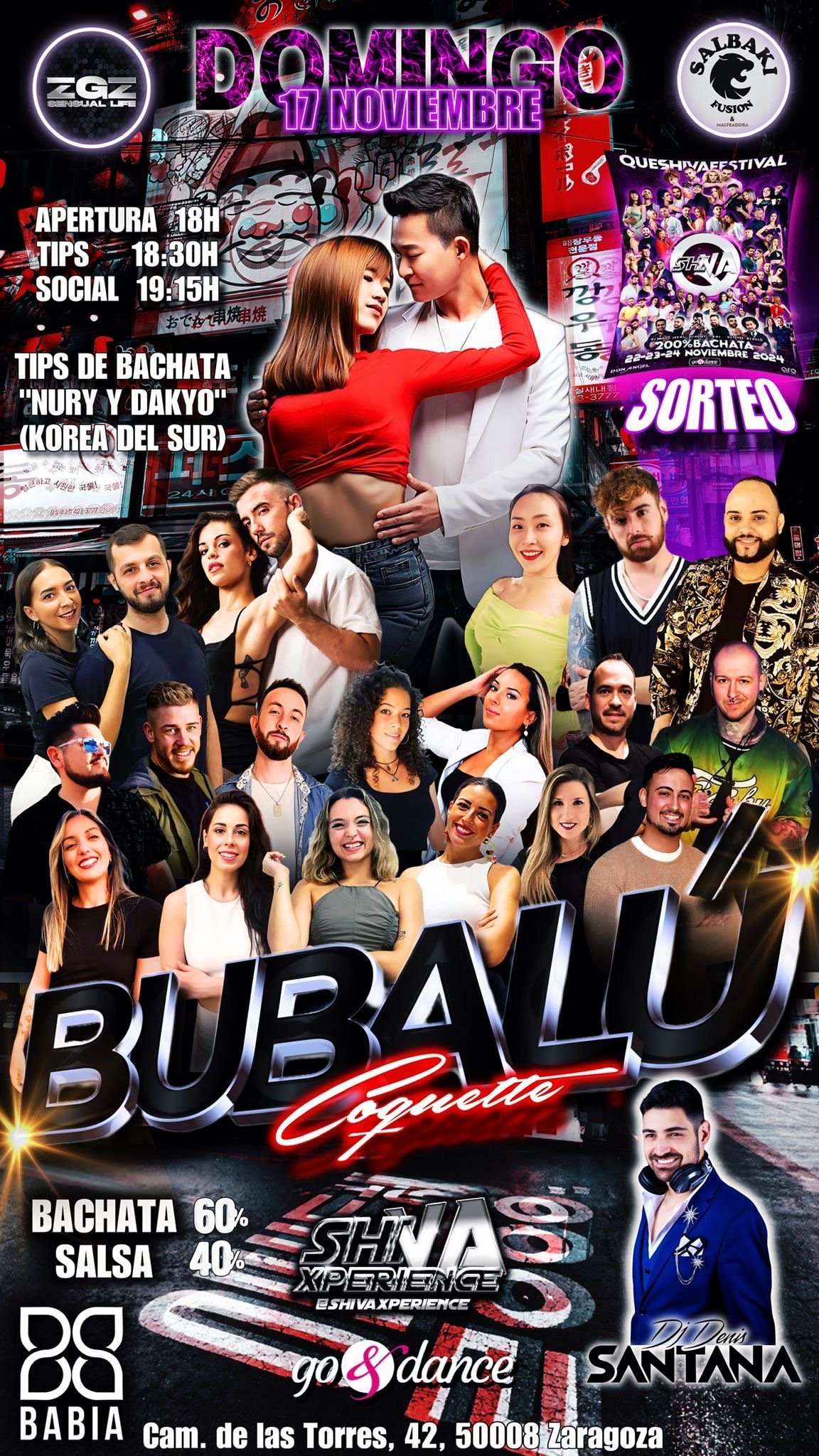 ? ¡Por fin llegó la sesión oficial de Bachata Sensual en "BUBALU COQUETTE"! ? En Zaragoza, la ciudad donde mejor se baila bachata sensual, nos reunimos cada DOMINGO para disfrutar de una noche llena de calidad de baile y buen ambiente. ?? ¿Estás listo para sumergirte en la magia de la bachata?