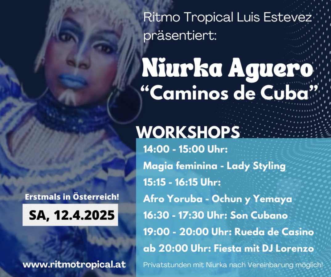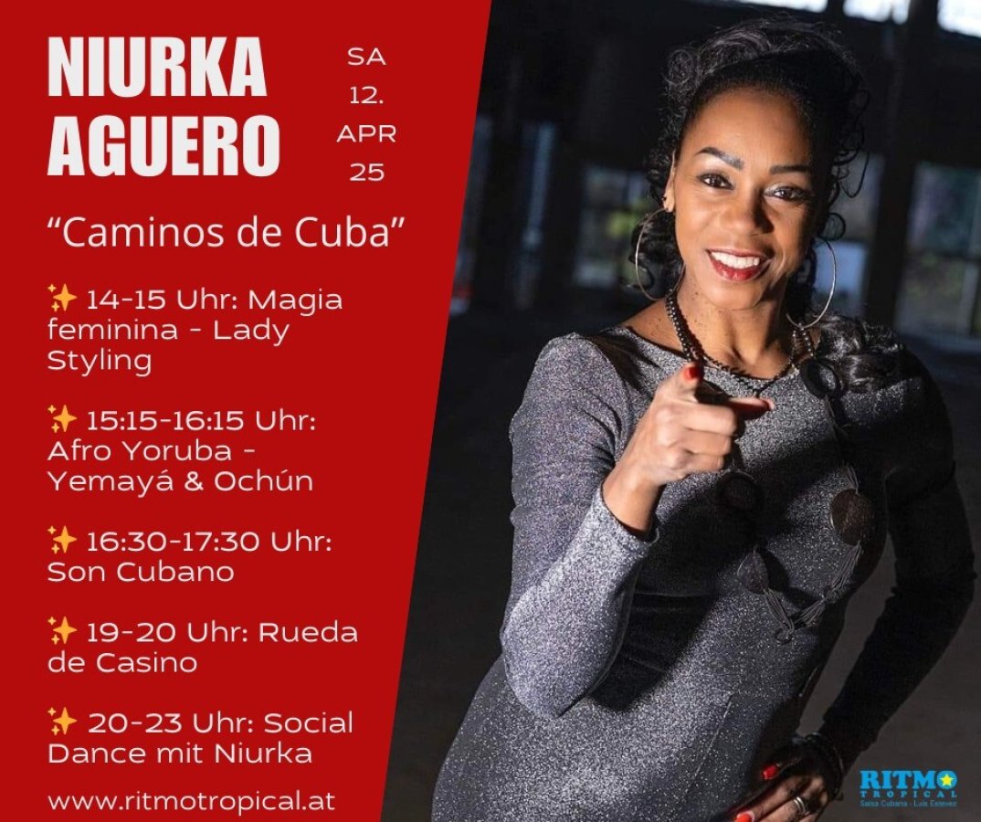 For the first time in Austria, exclusively in Ritmo Tropical: Niurka Aguero, an outstanding dancer and teacher, will be teaching in Vienna on Saturday, April 12th - a real highlight for all dance enthusiasts!