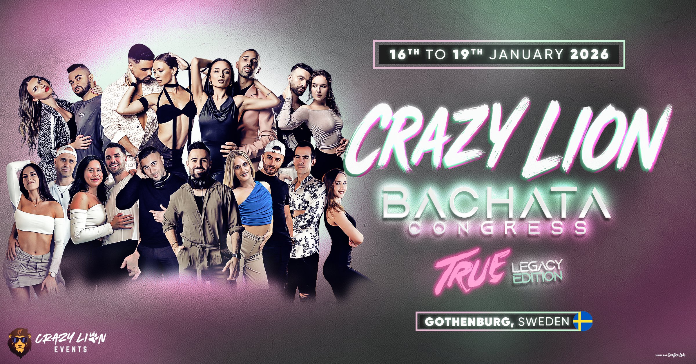 ¡Nos complace presentar la próxima edición del Crazy Lion Bachata Congress 2026! Después de una edición AGOTADA, prometemos algo diferente... ¡La próxima edición será del 16 al 19 de enero de 2026!