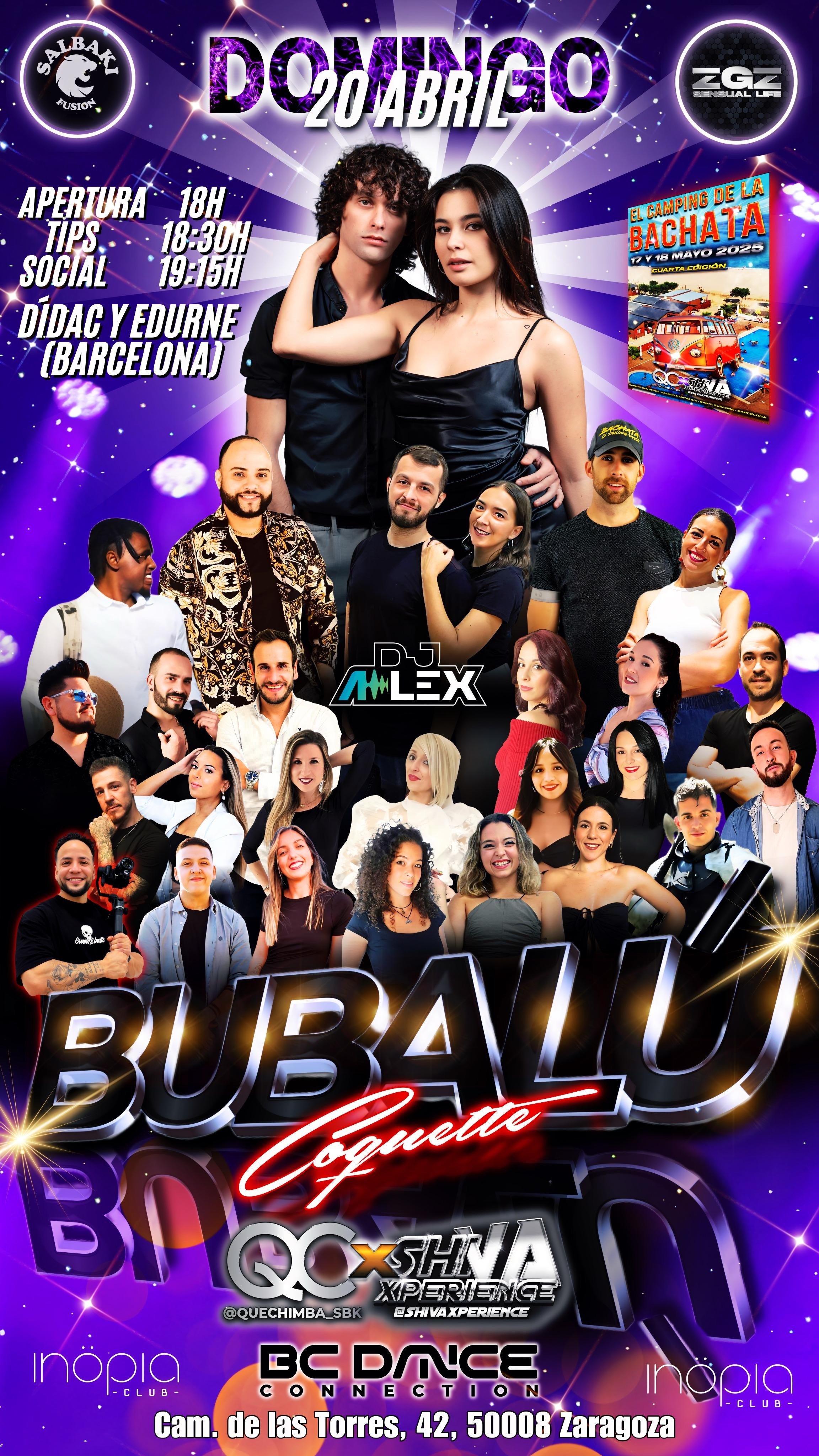 ? ¡Por fin llegó la sesión oficial de Bachata Sensual en "BUBALU COQUETTE"! ? En Zaragoza, la ciudad donde mejor se baila bachata sensual, nos reunimos cada DOMINGO para disfrutar de una noche llena de calidad de baile y buen ambiente. ?? ¿Estás listo para sumergirte en la magia de la bachata?