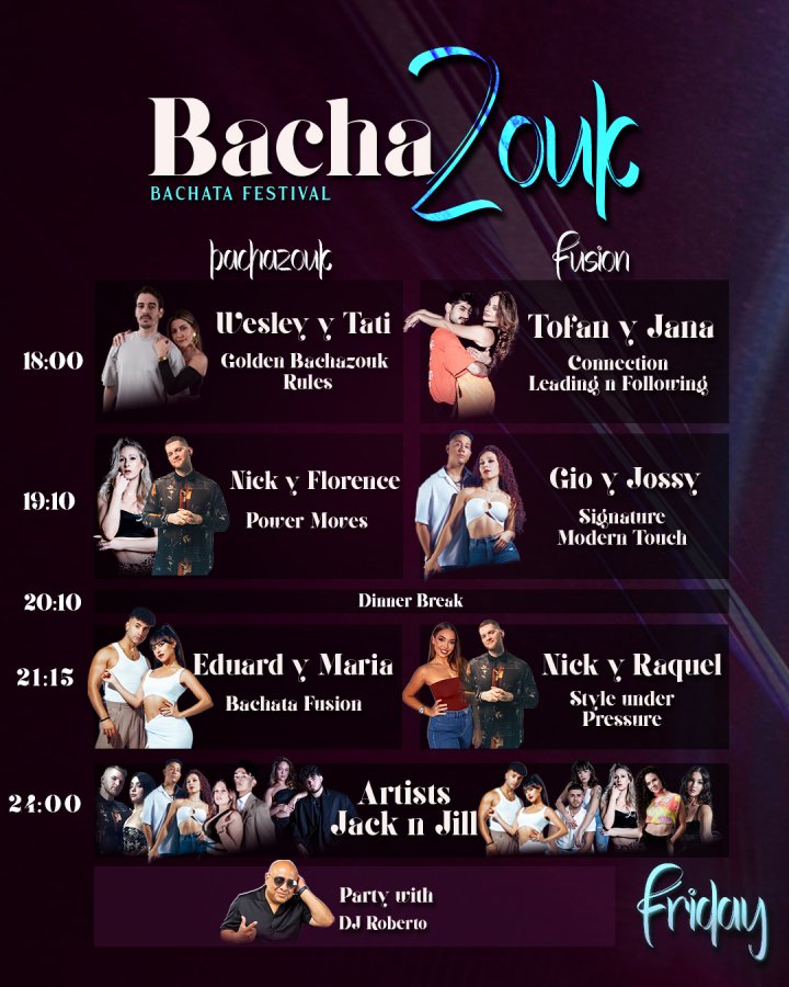 Level up with world-renowned Bachata instructors and feel the energy of DJ sets that keep the dance floor packed until the early morning. If you love social dancing, this is your paradise.