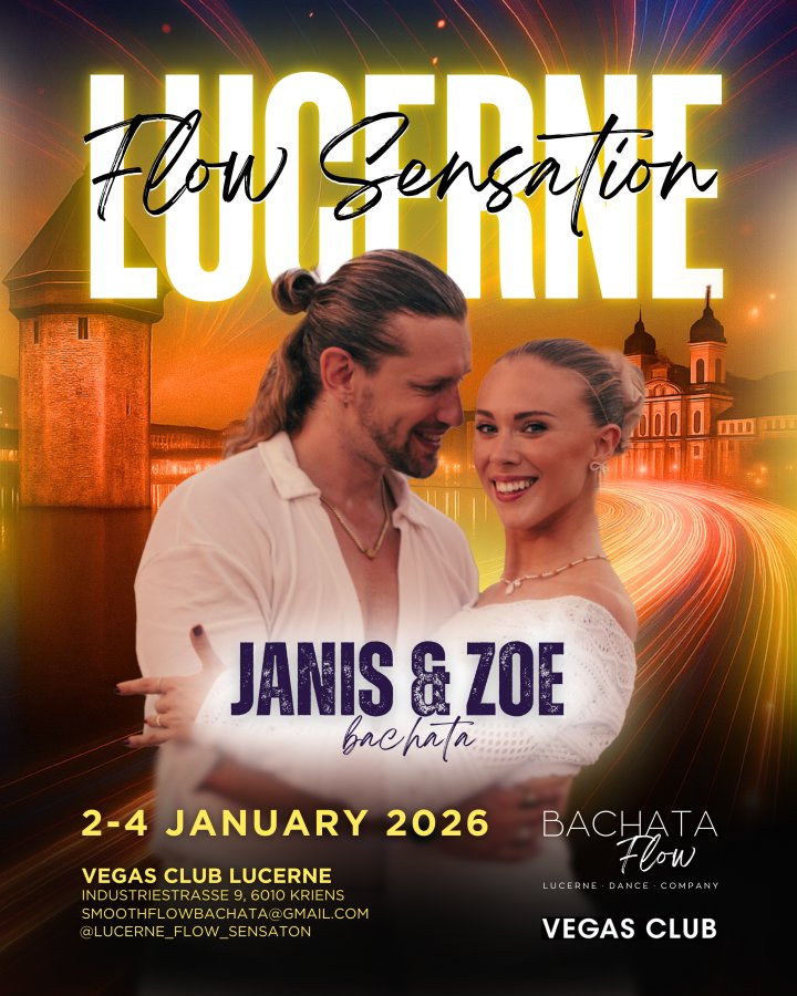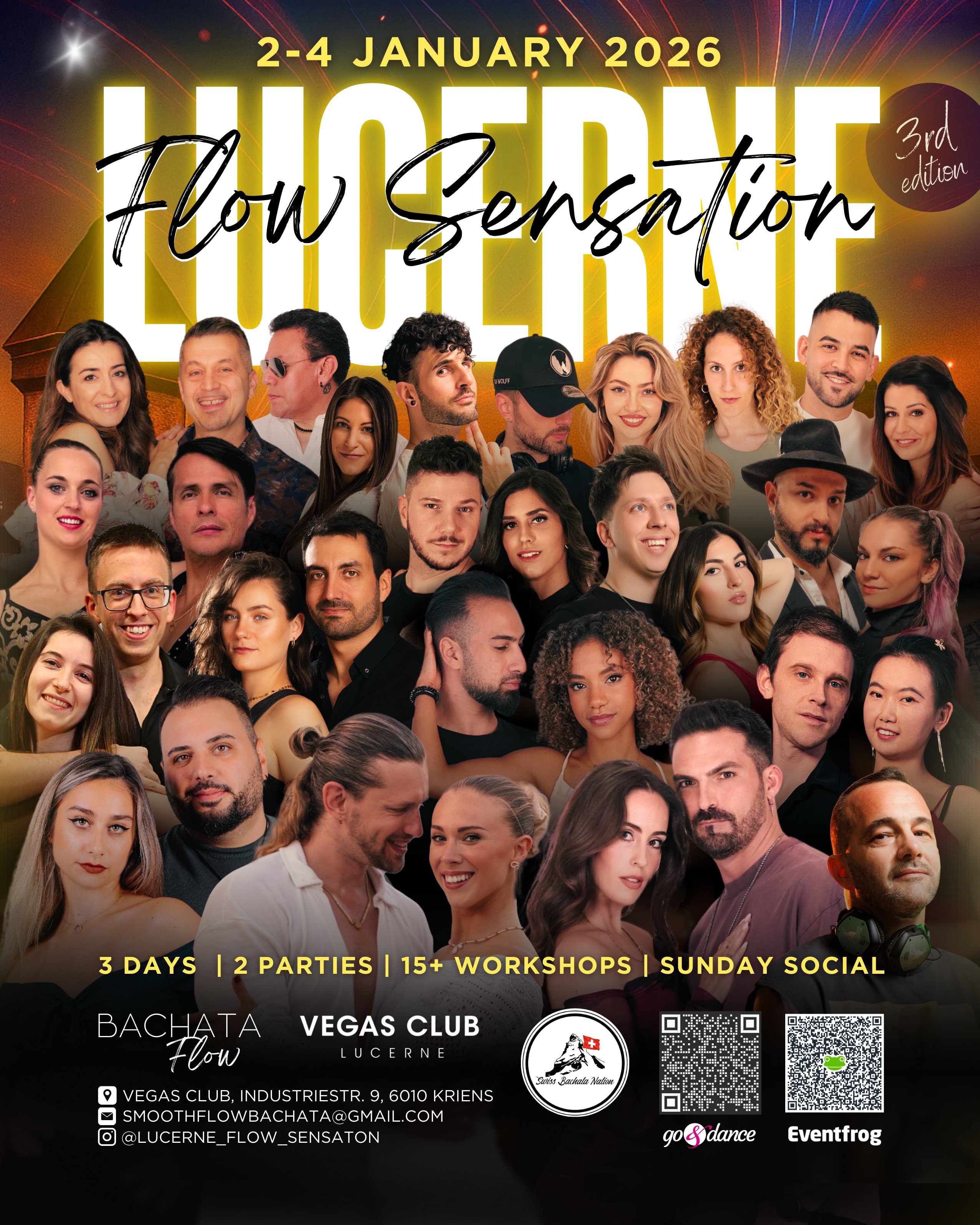 Get ready for an unforgettable 3-day experience filled with passion, rhythm, and connection! Join us for inspiring Bachata & Salsa workshops, two parties, and a vibrant Sunday Social — all taking place at the iconic Vegas Club in Lucerne, Switzerland.