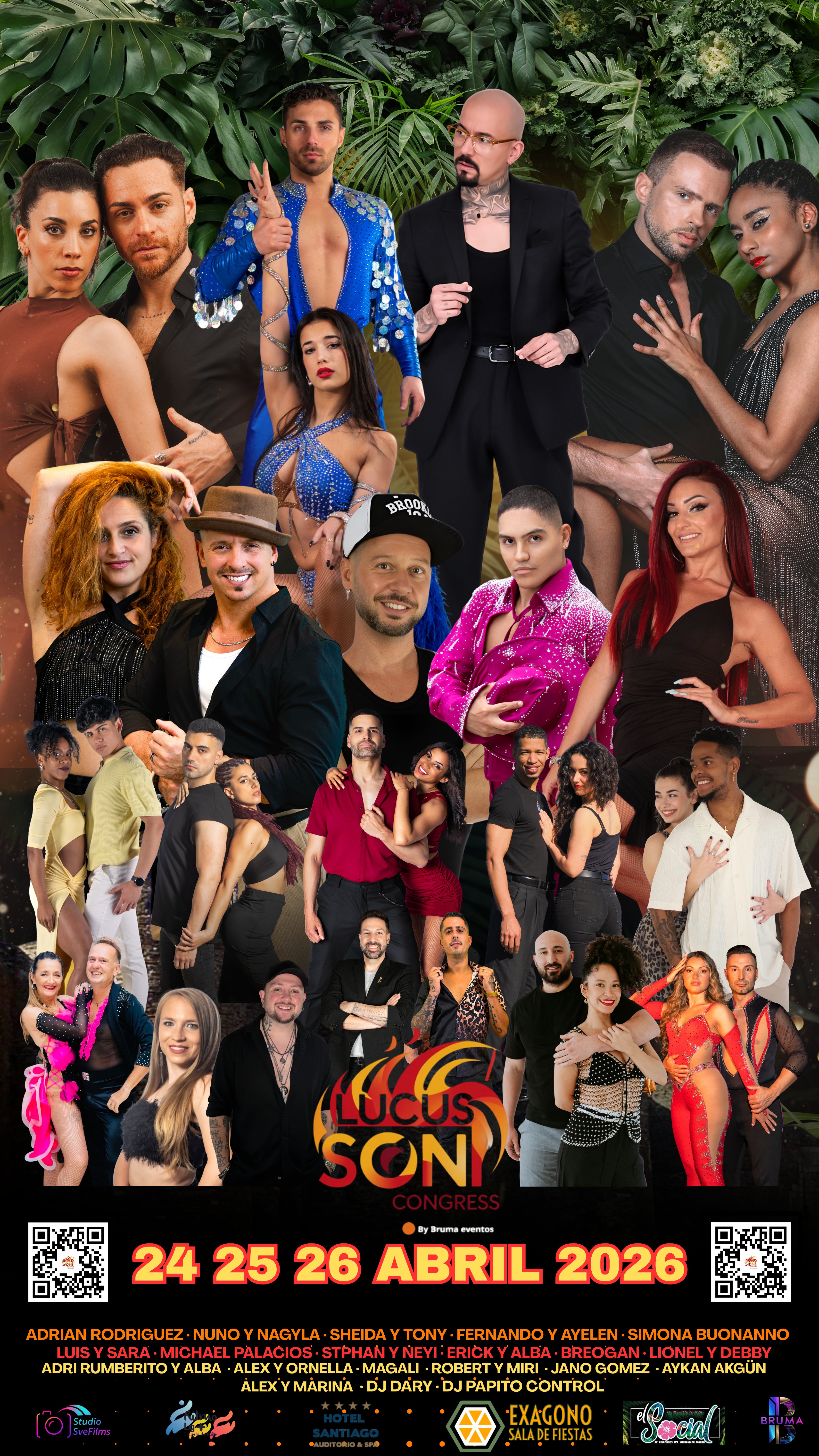 Prepárate para vivir tres días inolvidables en el Lucus Son Congress 2026, el congreso de bachata, salsa y kizombaque reunirá a artistas nacionales e internacionales en un evento único lleno de energía, ritmo y pasión.