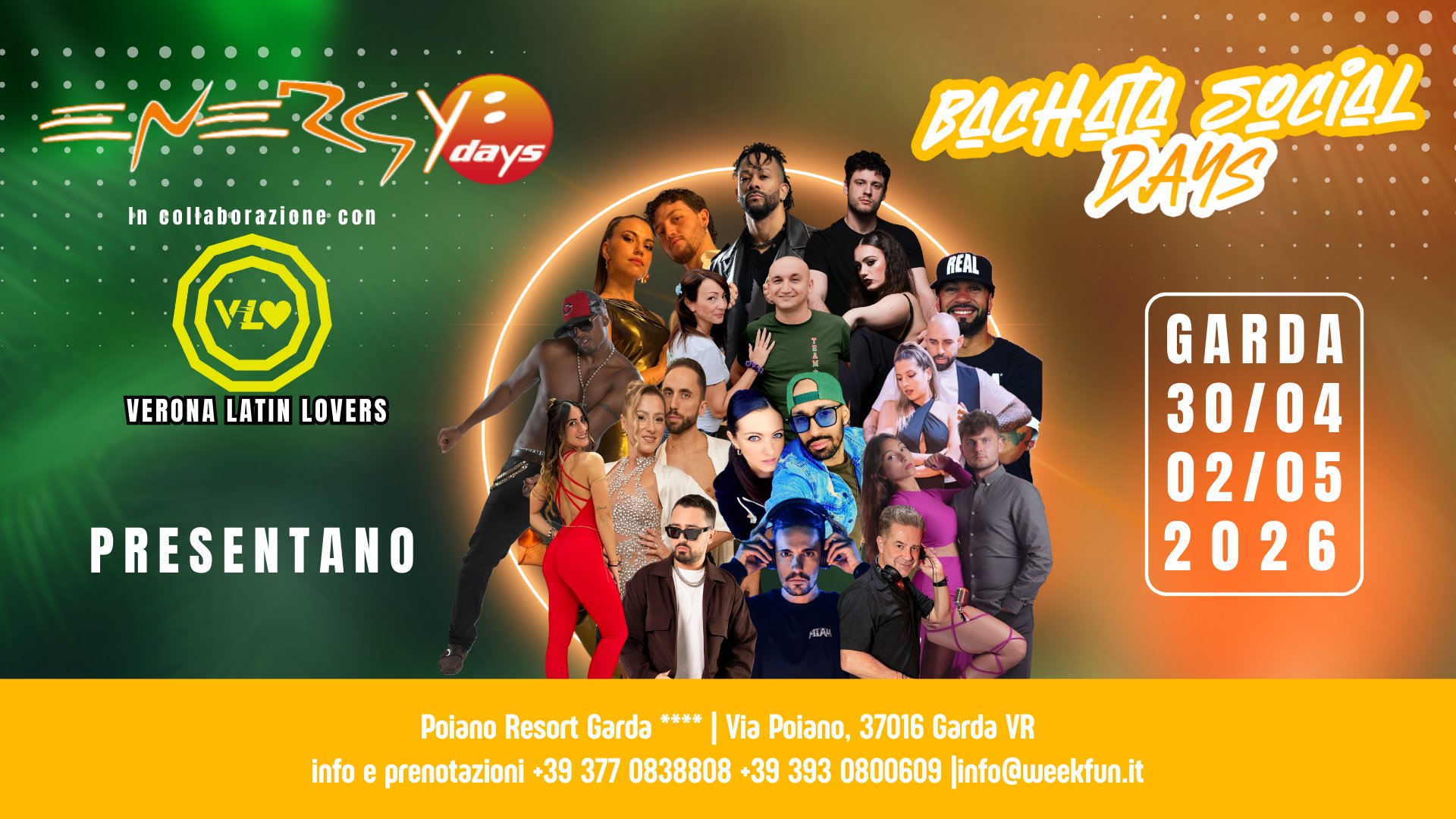 - Pre-evento dedicato alla Bachata la notte del 30 aprile e la giornata del 1 maggio (con Pool party di Bachata il pomeriggio del 1 maggio)