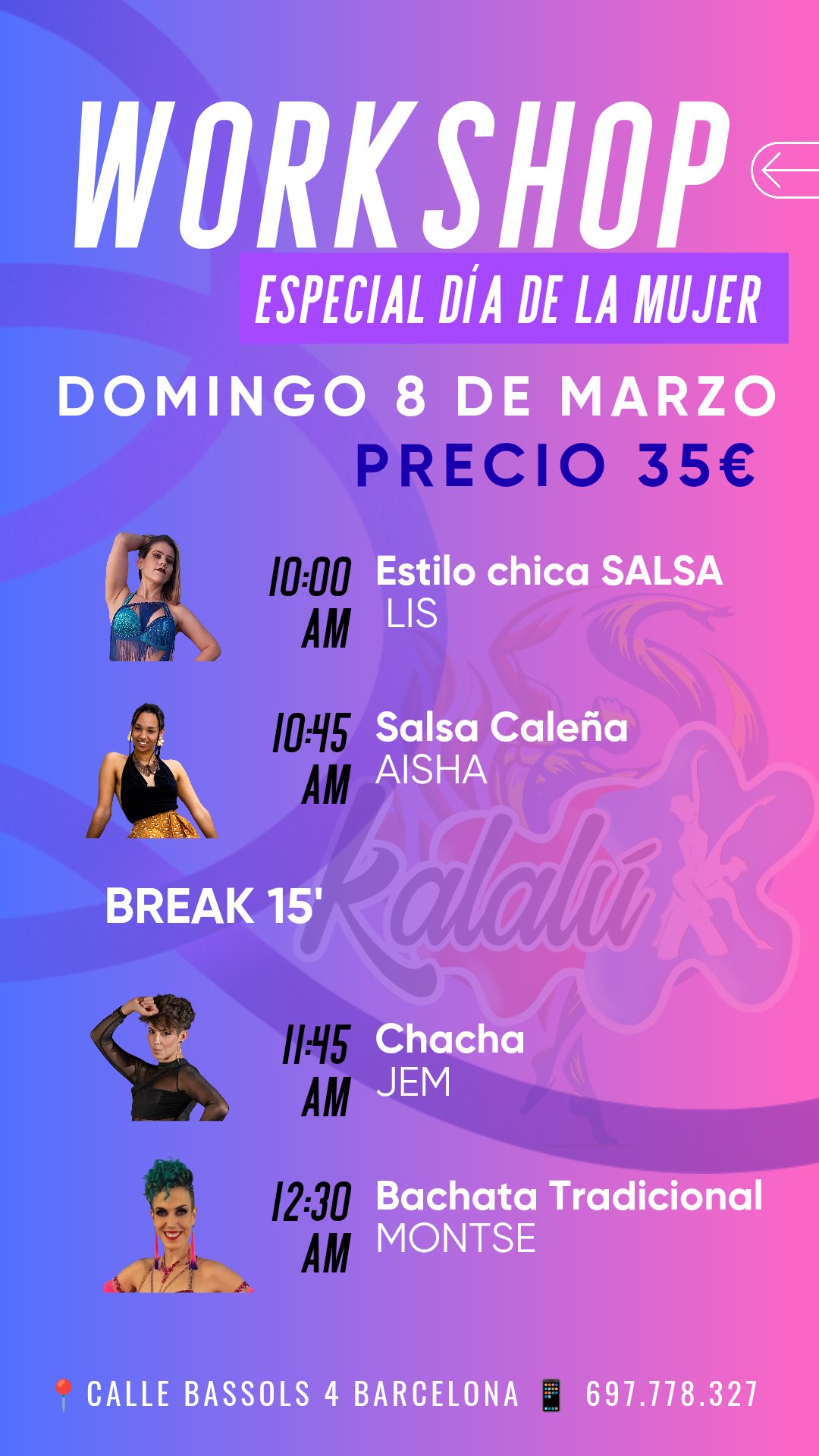 Únete a nuestro Workshop Especial y vive un entrenamiento completo con 4 estilos en un solo evento, pensado para potenciar tu técnica, tu presencia y tu feminidad en cada paso.